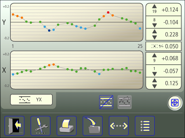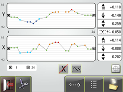 This application uses a laser plane as a reference. The deviation in distance between the laser plane and the measurement object is measured in one or more positions with the use of the receiver. The program allows for up to 150 points (10 x 15) to be measured.