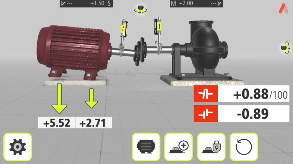 The NXA Pro’s machine train routine simplifies the complexity of aligning multiple units with connecting shafts. The software includes a “minimal moves” function which identifies the best reference machine to minimize the number of moves required to complete the alignment.