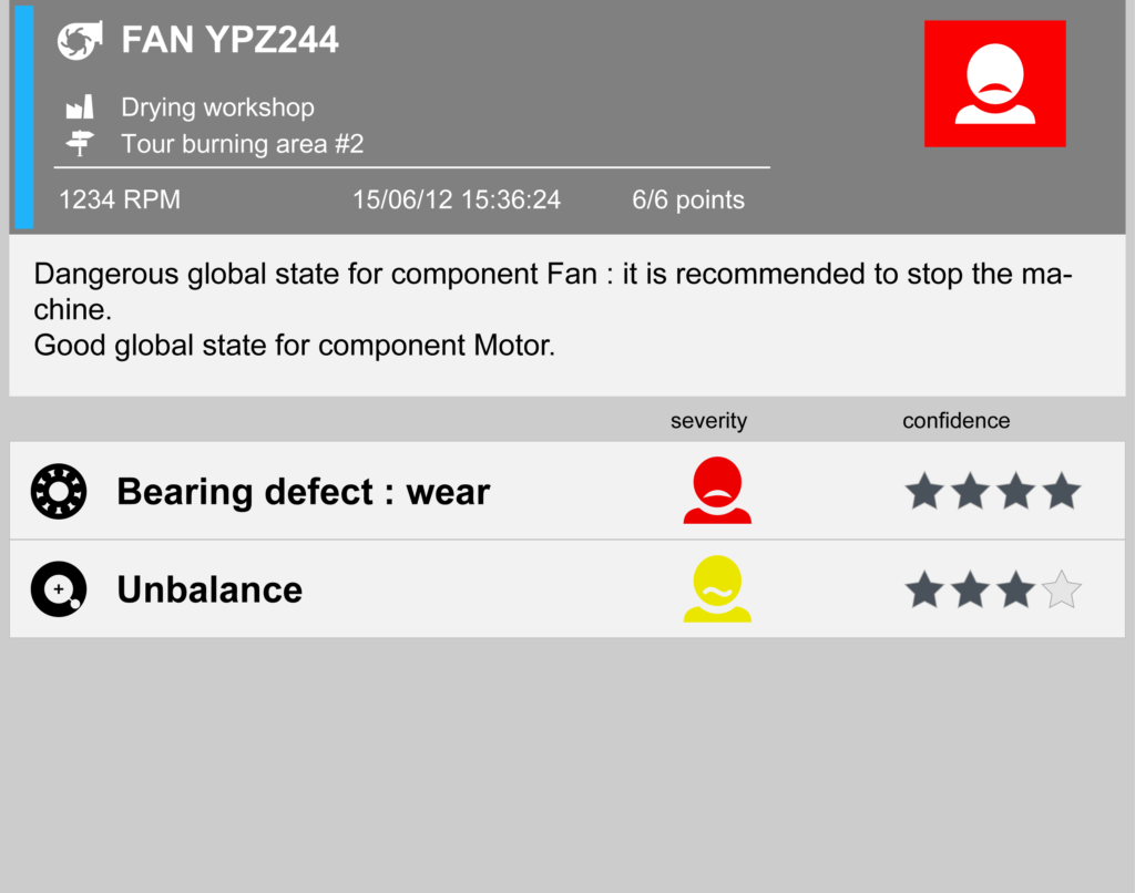FALCON allows making immediate use of the benefits of condition based maintenance: the Accurex™ automatic diagnostic works instantly based on the first measurement. Faults detected are available right in front of the machine such enabling interaction with the user (bearing lubrication, temperature control…) and optimization of the maintenance process.