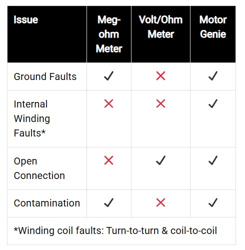 With its advanced capabilities, the MOTOR GENIE® MCA™ outperforms other traditional tools such as the Megohmmeter, RCL meter and other resistance meters.